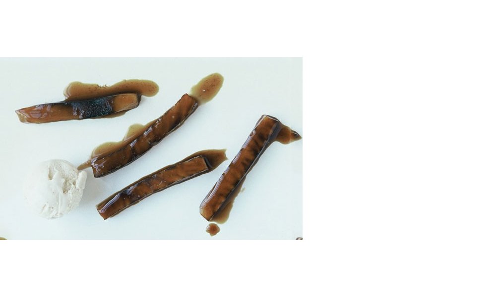 Saupoudrer de quatre belles cuillères à soupe de cassonade ainsi que d’une grosse noix de beurre (40 g). Porter doucement à ébullition et, après avoir couvert, (couvercle ou papier alu), enfourner à 180 °C pour une dizaine de minutes. Répartir les bâtonnets de céleri rave sur quatre assiettes en les disposant les uns à côté des autres. Faire réduire le jus de cuisson de manière à obtenir une petite sauce et napper le céleri avec celle-ci. Disposer une quenelle de glace sur chaque assiette tiède et servir.