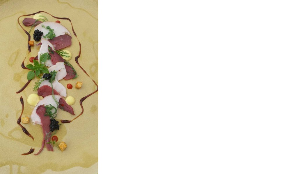 Fumer le blanc de poulet et le magret de canard ensemble avec les peaux d’oranges durant 4 heures à une température de 75 °C dans un BBQ céramique de BergHOFF.
