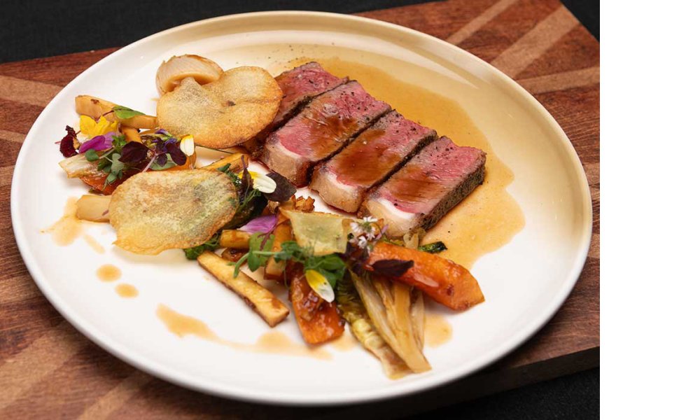 Tranchez le contre-filet de bœuf à 1,5 cm d’épaisseur. Déposez les tranches de viande sur l’assiette.