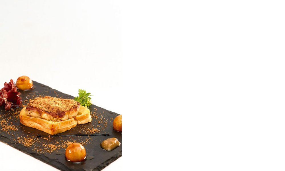 Préparez un confit d’oignons et de rhubarbe. Faites cuire le foie d’oie dans une poêle antiadhésive sans matière grasse et déposez-le ensuite sur un papier cuisine.