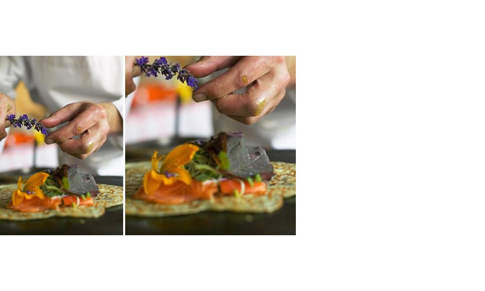Ajouter les fleurs et herbes du jardin de votre choix et relever avec un tour de moulin à poivre avant de servir.