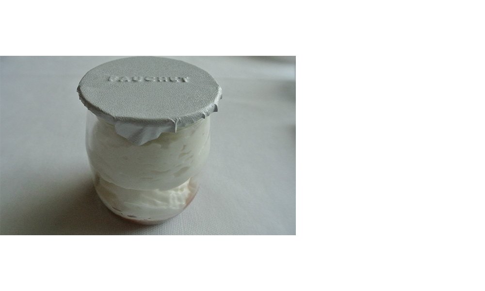 Emulsion au yaourt : mélanger 200 gr de yaourt entier, 50 gr de crème, 10 gr de sucre, 1/2 feuille de gélatine ramollie à l'eau froide puis fondue avec 1 cuillère à soupe d'eau. Ensuite mettre dans un siphon avec 2 cartouches de gaz.