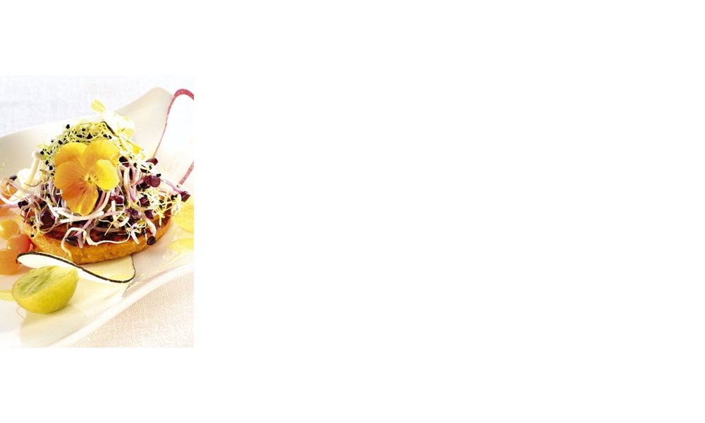 Dresser les galette avec les coquilles sur ce coulis et poser dessus une petite boule de germes de luzerne ou de radis.