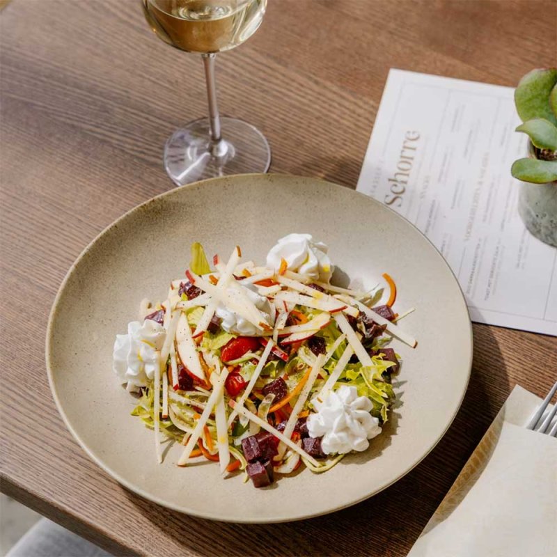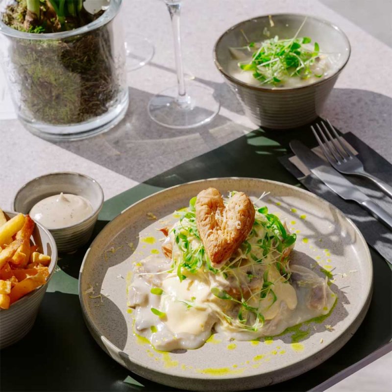 Xavier Van Hecke: “Oui. Nous achetons tous nos légumes chez “Ons Logisch Voedsel’ à Booischot, une jeune entreprise qui cultive de manière biologique et respectueuse de l’environnement. Nous suivons ce qu’ils récoltent de manière hebdomadaire et nous le travaillons dans nos plats. Plus lié aux saisons que cela est impossible… Nous ne nous occupons pas des légumes et des herbes qui arrivent sous nos cieux en avion. Nous les trouvons trop chers et surtout pas durables. ”