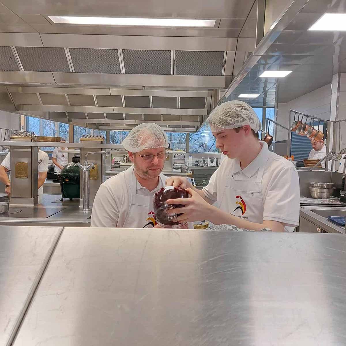 Parmi toutes les candidatures, quatre équipes ont été sélectionnées pour la grande finale à Namur. Elles ont eu l’occasion de cuisiner dans une cuisine professionnelle avant de terminer par une création chocolatée servie avec un café Rombouts, grâce au soutien de Callebaut.