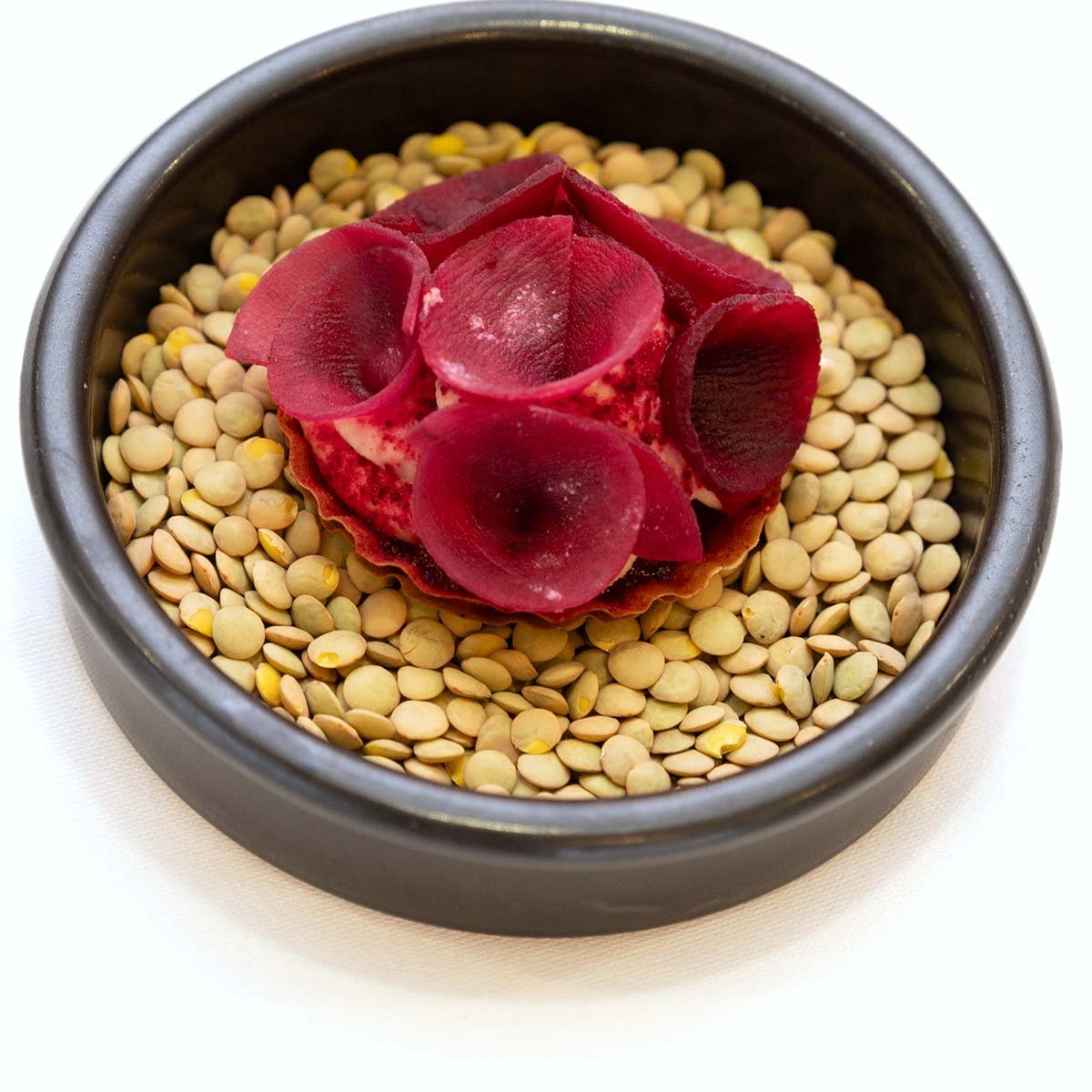 - Une mise en bouche végétarienne, parfaitement accordée avec un verre de Perrier-Jouët.