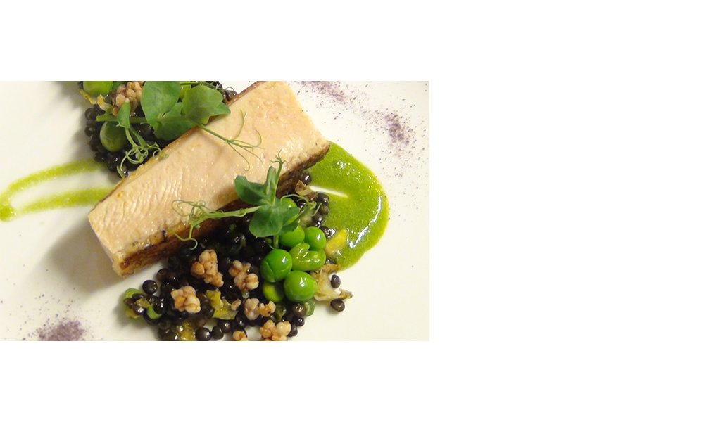 Au centre d'une grande assiette plate, déposer les lentilles et les petits pois juste réchauffés, la poularde coupée en 2 au centre de l'assiette, quelques grains de fleur de sel et du poivre du moulin. Déposer 2 cuillère à soupe de jus vitaminé et garnir de quelques pluches.