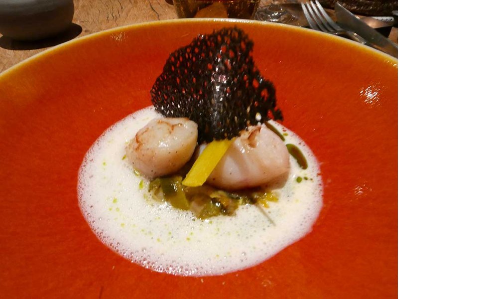 Emulsionner la crème avec une pointe de lécithine de soja puis ajouter sur l’assiette en agençant le tout harmonieusement.