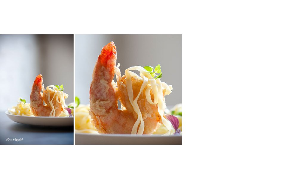 Plonger les gambas à qui on a laissé la queue dans la pâte à tempura et puis dans la friture (huile) à 180 °C, jusqu’à ce qu’elles soient dorées. Saupoudrer de sel.