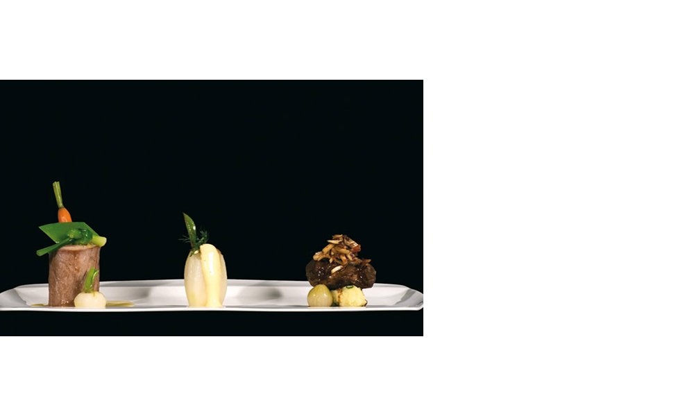 Nettoyer le filet de porc et le couper en deux dans le sens de la longueur. Assaisonner de sel et de poivre, farcir avec le pata negra et le fromage truffé. Rouler dans du film alimentaire et cuire à 65 °C de manière à arriver à cœur à 60 °C. Poêler ensuite brièvement. Couper en morceaux et servir avec des légumes de saison frais.