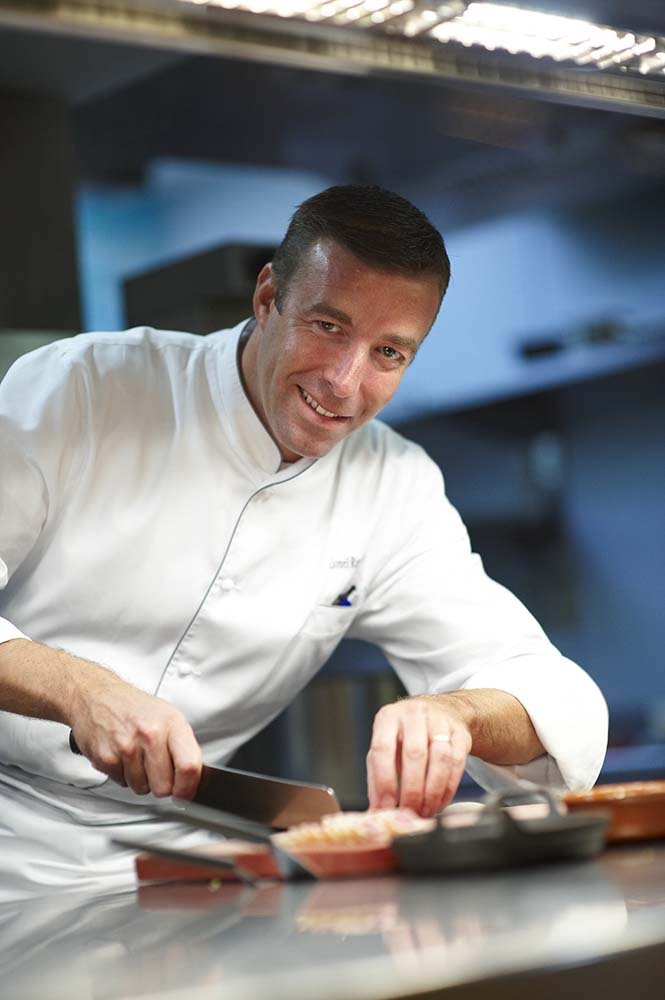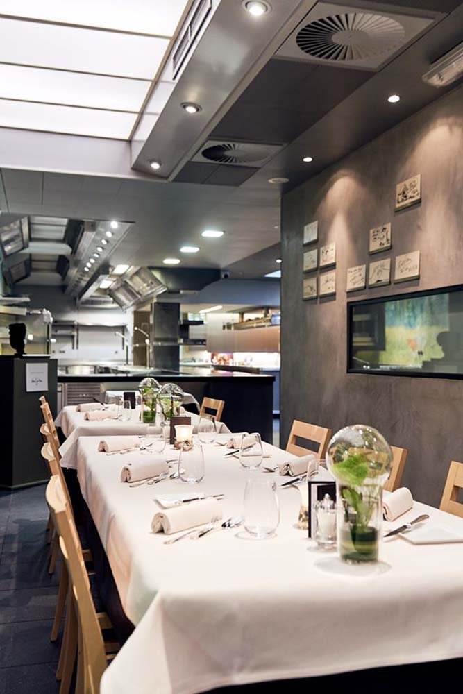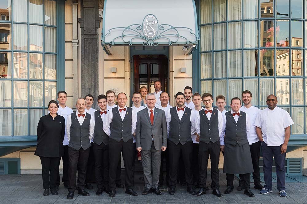 De chef-kok, vergezeld van zijn brigade, brengt dagelijks hulde aan het werk van de drie vorige generaties en legt tegelijk zijn eigen stijl en visie op via een creatieve en moderne keuken.