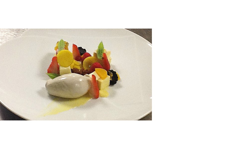 Snij de aardbeien en meng met zeste van de limoen, limoensap, bloemsuiker en fijn gesneden munt.