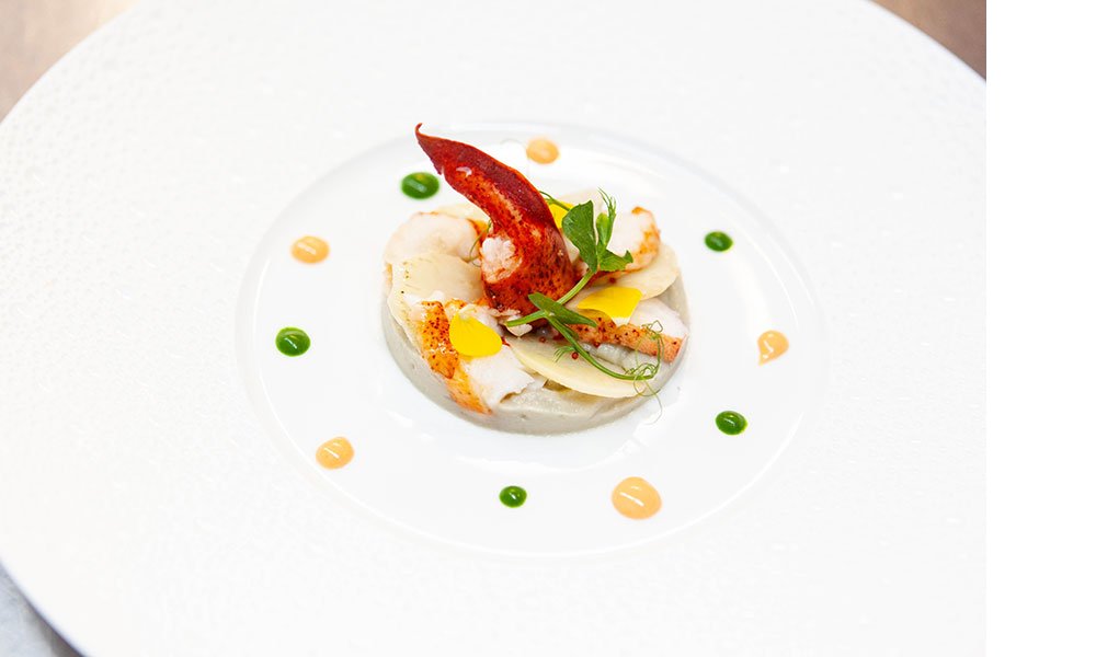 Bak de kreeftstaarten in olijfolie. Garneer het voorgebakken flapje bladerdeeg met een beetje saus en fijngesneden zeekraal.
