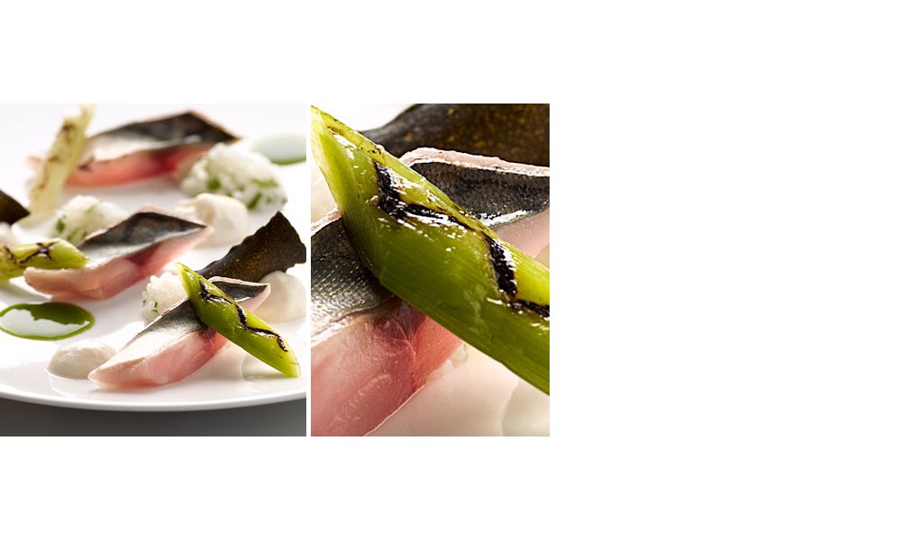Makreel : Marineer de makreelfilet 15 minuten in olijfolie en citroensap. Kruid met een beetje fleur de sel.