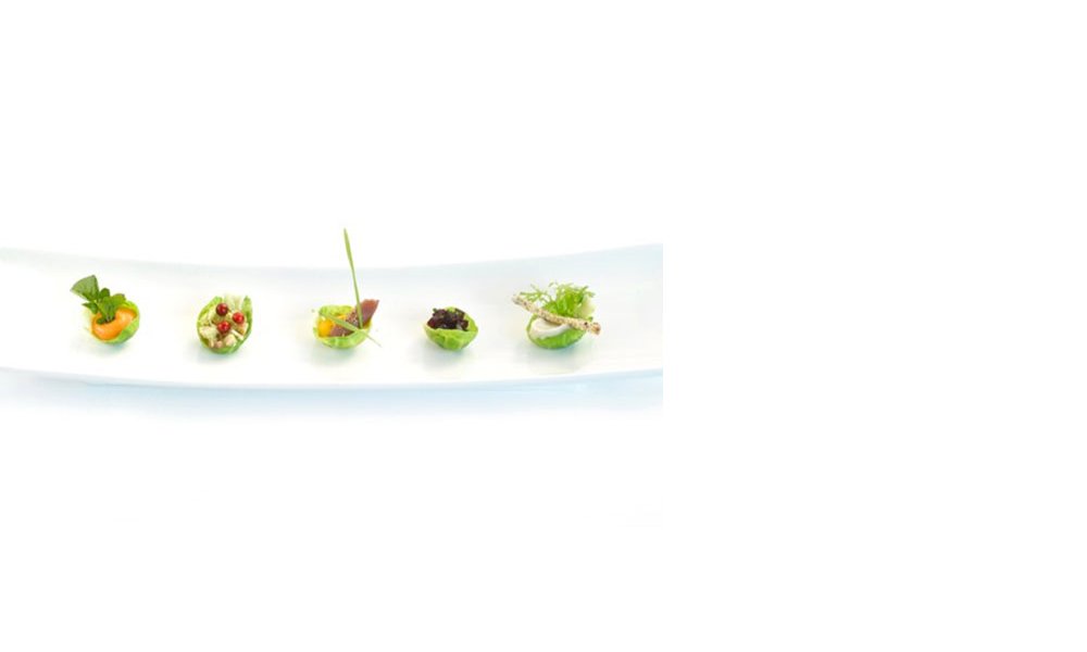 Spruiten kuisen en grote buitenste blaadjes één voor één lossnijden. Deze stomen of garen we zeer kort (1 minuut) en doppelen we onmiddellijk in koud water om de prachtige fris groen kleur optimaal te behouden. We voorzien zoveel blaadjes als personen en hosties we willen brengen bij het aperitief. De hosties vormen trouwens ook een prachtige decoratie bij gerechten, maken er onderdeel vanuit of zijn natuurlijke en decoratieve sausschelpjes op het bord. Laat het duidelijk zijn : er zijn zoveel combinaties mogelijk als u er bedenkt. Ziehier enkele ideetjes.