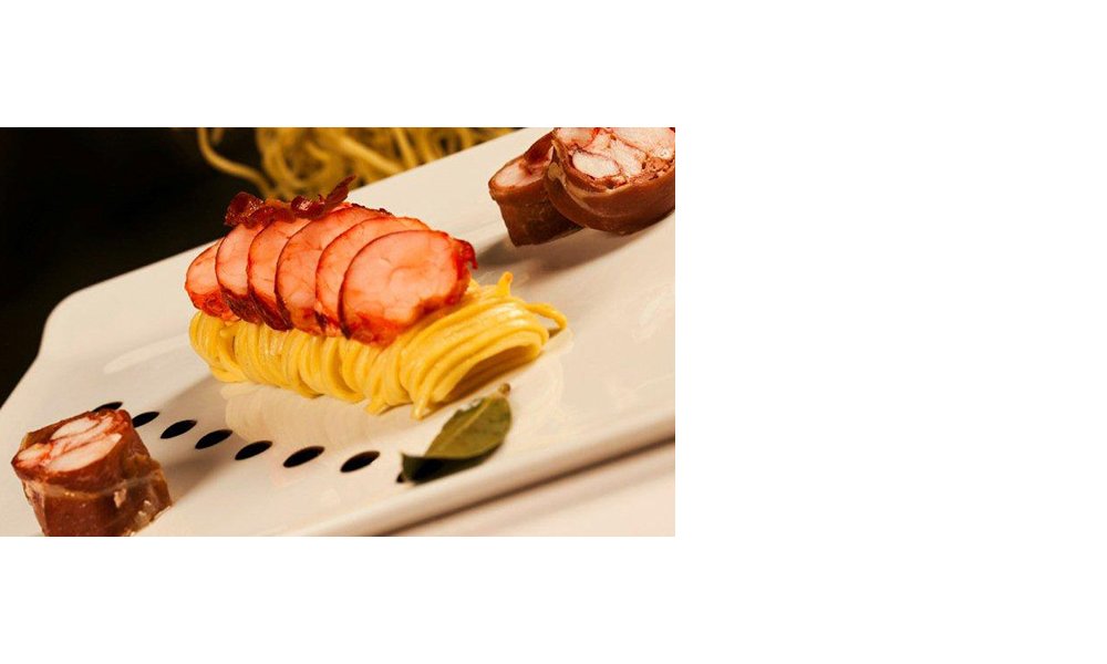 Leg de taglionili onder de kreeftenschijfjes zoals op de foto. Lepel er wat basilicumolie over en decoreer met jonge scheutjes. Zet het sauskommetje op de tafel.