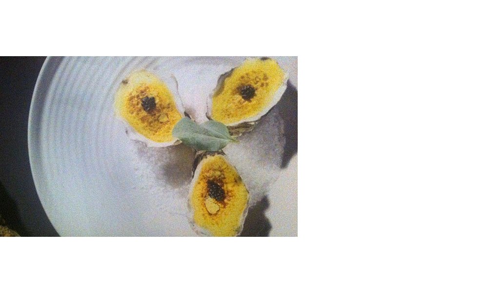 Klop alles in achtvorm op het vuur tot je een stevig schuim krijgt. Bedek de oesters met deze sabayon. Gratineer de oesters met de sabayon.