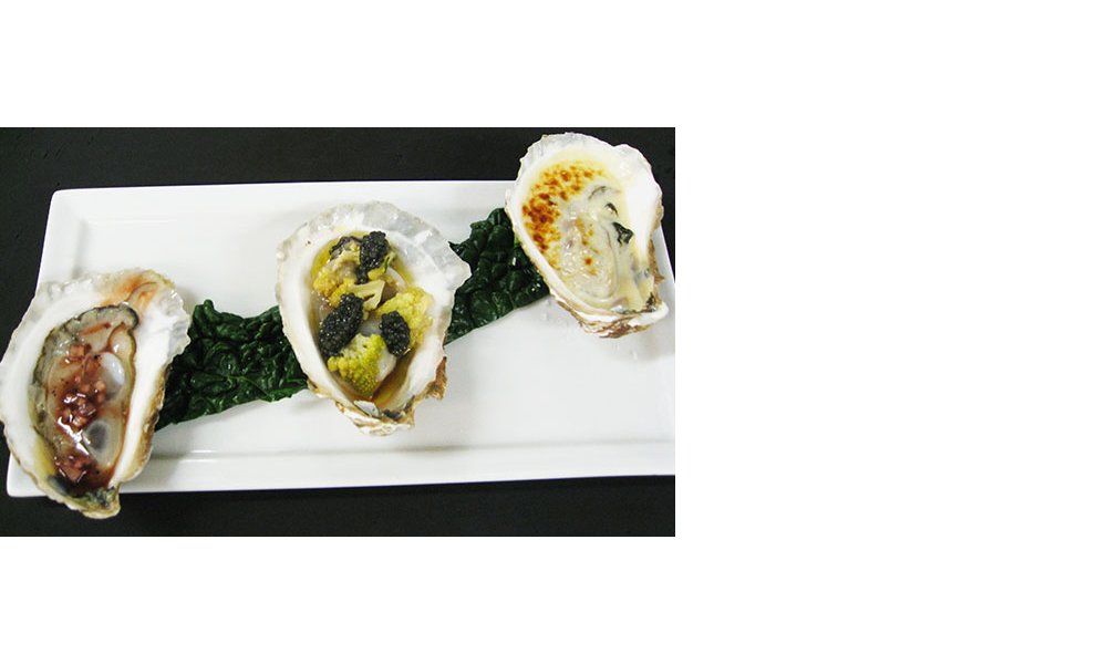 Oester met bloemkoolpannacotta en kaviaar en voor de bloemkoolpannacotta: