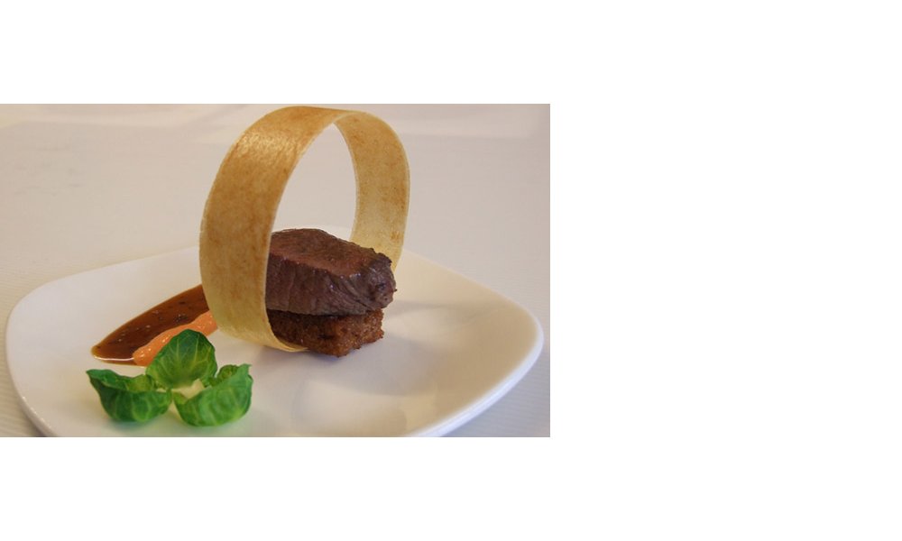 Leg op de krokante cirkel van brik deeg een sneetje peperkoek, leg er een reeboknootje op. Leg er de wortelpuree, de wildsaus met braambessen naast. Voeg er als versiering enkele blaadjes van de spruitjes aan toe.