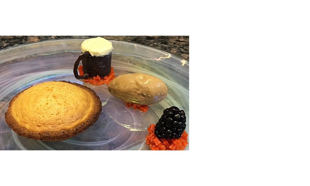 Voor de banketbakkersroom: kook de melk met de vanille. Snijd de wortelen in blokjes van 3 cm. Karamelliseer ze in de honing. Voeg er de melk aan toe en laat gedurende 4 minuten koken. Meng de eieren met de suiker en vervolgens de bloem. Giet de kokende melk over de eieren en zet opnieuw op het vuur tot het mengsel kookt. Laat 3 minuten koken. Laat afkoelen en zet in de koelkast.