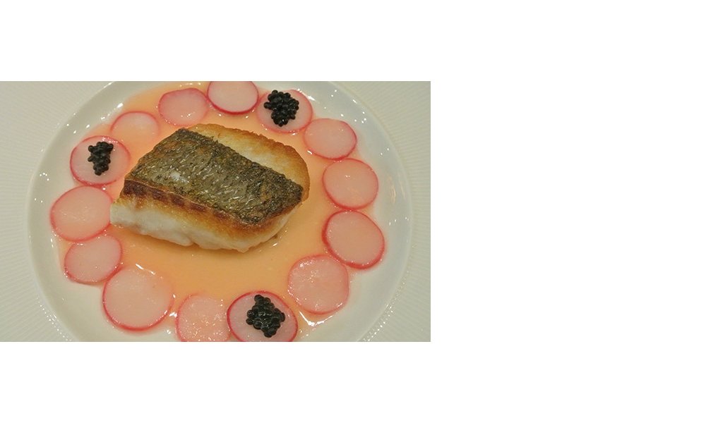 Leg de dorade op een bord. Lepel er de boter met de radijsjes over. Leg er een kleine quenelle met Haruskaviaar bij.