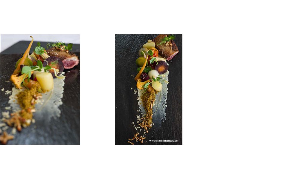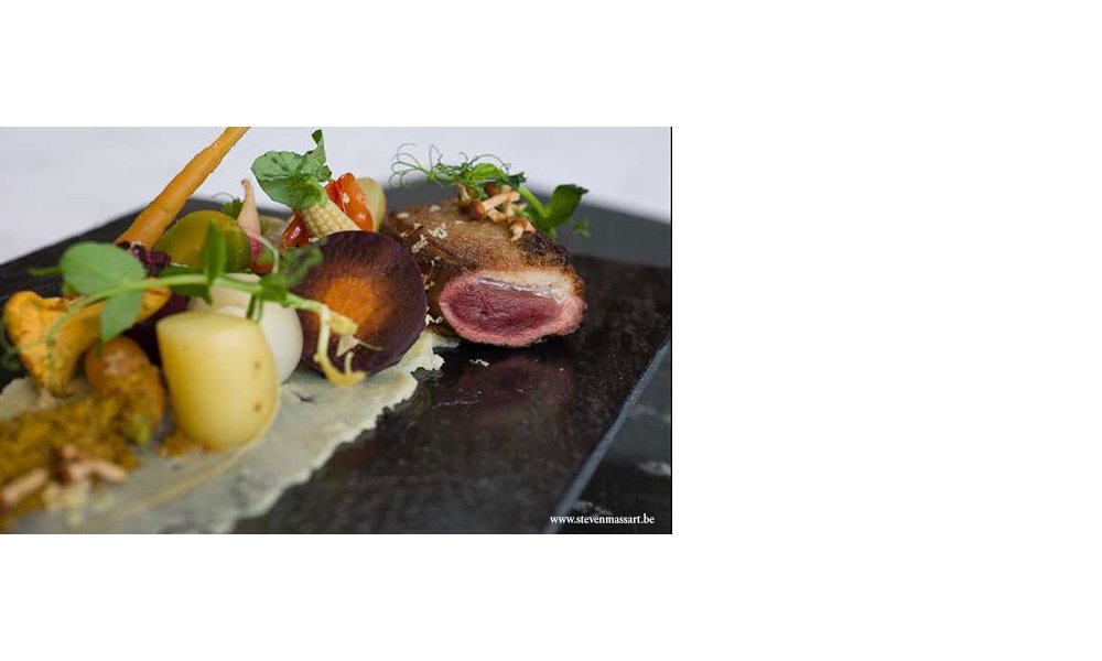 Schik hierop de niet versneden filet van de eend (laat de gasten dit zelf doen).